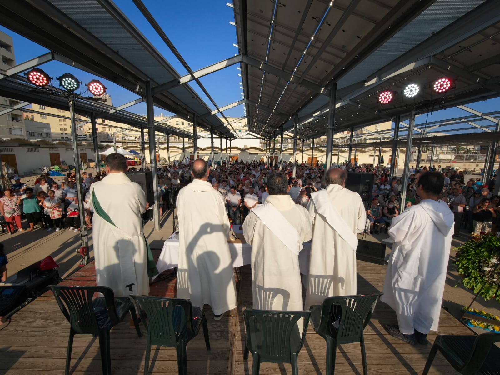Des de la parròquia de Sant Miquel es marxa en processó fins al Moll dels Pescadors. Allà s’embarca a la figura en una de les barques i, acompanyada per la resta de la flota en processó, es recorren les aigües del port. Posteriorment, s’ofereix una mis- sa al moll i es realitzen ofrenes a la Verge per a demanar-li protecció al mar.